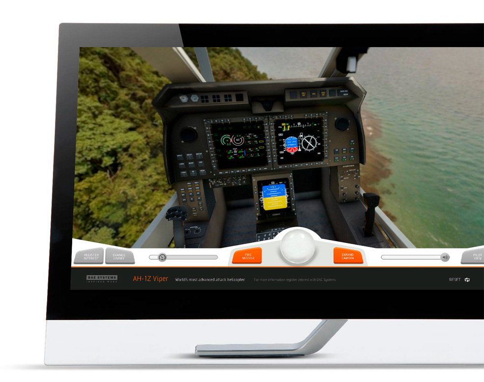 BAE Required a show-stopper 3D idea which Spark produced in the form of an interactive 3D CGI live rendered war ship which focused on some technology aspects of the ships stealth technology and even enables 3600 sea scape view with the ability to change sea conditions to provide a sense of realism during the VR/3D Interactive experience. With ultra high definition this high level CGI certainly wowed BAE.