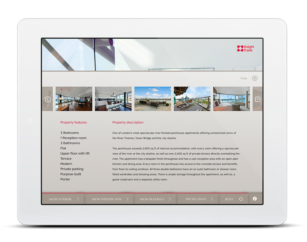 Knight Frank commissioned this AR experience to share a vision of the mixed interior design schemes and configurations for off-plan apartments in prime/super prime locations throughout Londons Baker Street and Marylebone areas. This new Mobile AR configuration can view apartment floor plates from above and enables interactivity and fully immersive placement opportunities for redevelopment using the latest in digital experiences.