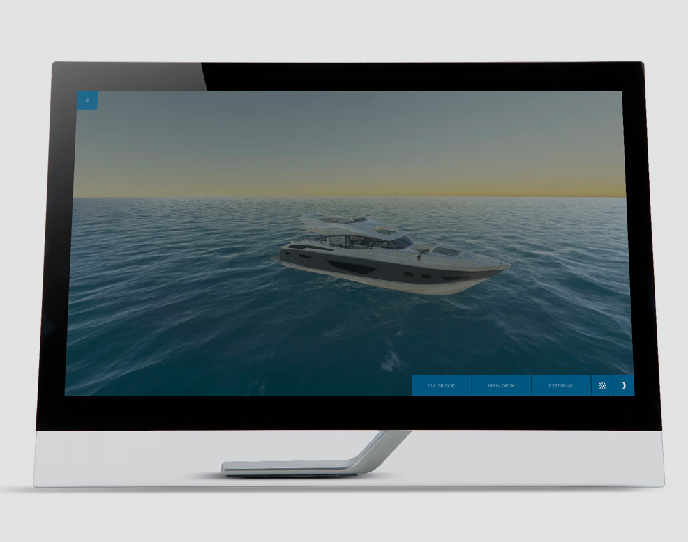 The challenge we presented ourselves was to bring the flexibility of personalising your own bespoke yacht interiors in line with our existing 3D simulation technology. Building the exterior and interior to high specification using the latest high-end 3D modelling and lighting effects mixed with photography to deliver stunning simulations, all fully customisable in real-time, and optimised for use on off the shelf tablets.